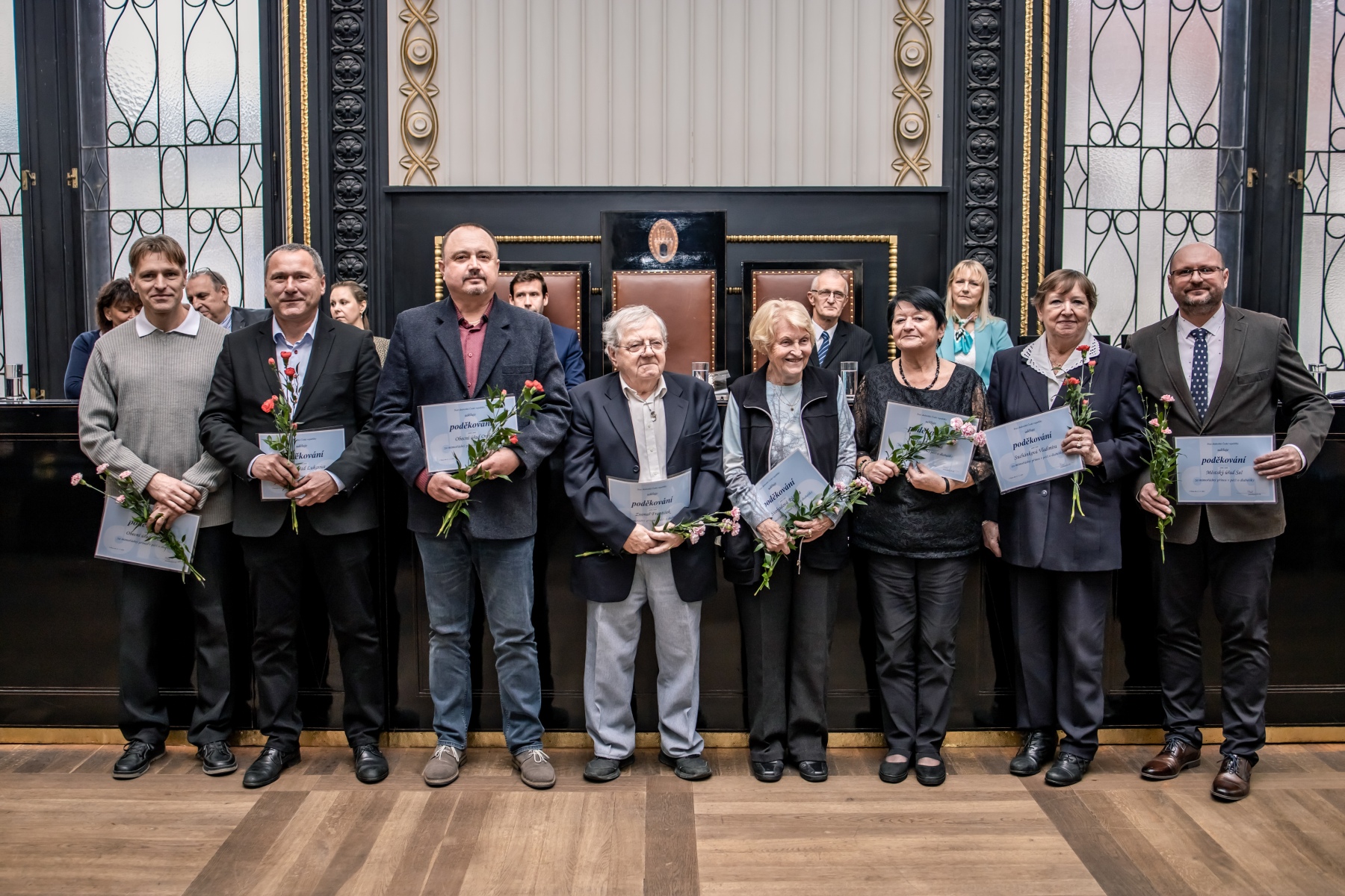 Setkání bylo zakončeno společným fotografováním hostů a oceněných, neformálním networkingem s občerstvením a komentovanou prohlídkou historických prostor Staroměstské radnice.